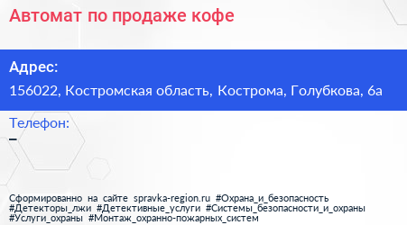 Автомат по продаже кофе по адресу 156022, Костромская область, Кострома, Голубкова, 6а в дальнейшем Организация, размещена в следующих категориях: