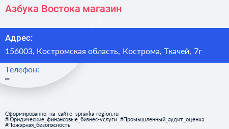 Азбука Востока, магазин по адресу 156003, Костромская область, Кострома, Ткачей, 7г в дальнейшем Организация, размещена в следующих категориях: