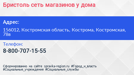 Бристоль, сеть магазинов у дома по адресу 156012, Костромская область, Кострома, Костромская, 78в в дальнейшем Организация, размещена в следующих категориях: