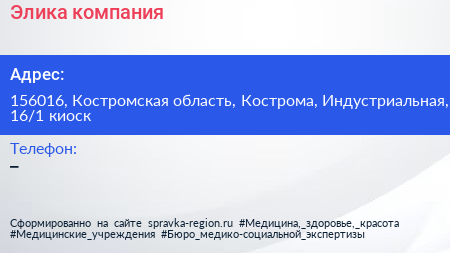 Элика, компания по адресу 156016, Костромская область, Кострома, Индустриальная, 16/1 киоск в дальнейшем Организация, размещена в следующих категориях: