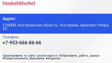 HookahMarket по адресу 156000, Костромская область, Кострома, проспект Мира, 10 в дальнейшем Организация, размещена в следующих категориях: