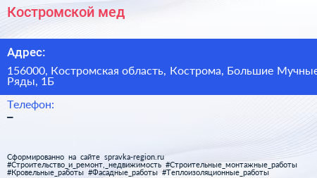 Костромской мед по адресу 156000, Костромская область, Кострома, Большие Мучные Ряды, 1Б в дальнейшем Организация, размещена в следующих категориях: