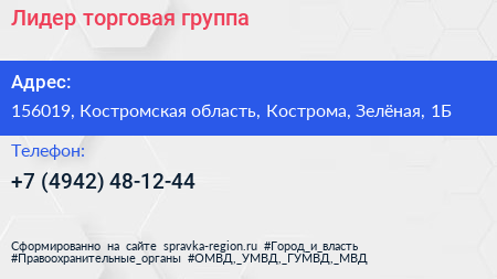 Лидер, торговая группа по адресу 156019, Костромская область, Кострома, Зелёная, 1Б в дальнейшем Организация, размещена в следующих категориях: