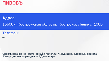ПИВОВЪ по адресу 156007, Костромская область, Кострома, Ленина, 100Б в дальнейшем Организация, размещена в следующих категориях: