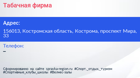 Табачная фирма по адресу 156013, Костромская область, Кострома, проспект Мира, 33 в дальнейшем Организация, размещена в следующих категориях: