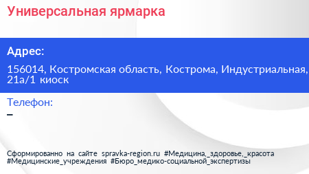 Универсальная ярмарка по адресу 156014, Костромская область, Кострома, Индустриальная, 21а/1 киоск в дальнейшем Организация, размещена в следующих категориях: