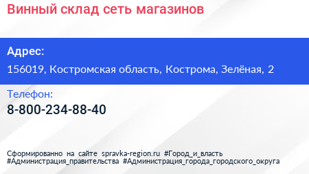 Винный склад, сеть магазинов по адресу 156019, Костромская область, Кострома, Зелёная, 2 в дальнейшем Организация, размещена в следующих категориях: