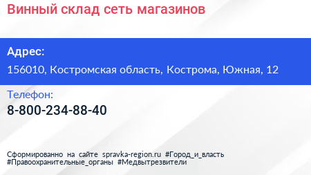 Винный склад, сеть магазинов по адресу 156010, Костромская область, Кострома, Южная, 12 в дальнейшем Организация, размещена в следующих категориях:
