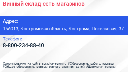 Винный склад, сеть магазинов по адресу 156013, Костромская область, Кострома, Поселковая, 37 в дальнейшем Организация, размещена в следующих категориях: