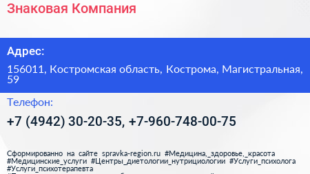 Знаковая Компания по адресу 156011, Костромская область, Кострома, Магистральная, 59 в дальнейшем Организация, размещена в следующих категориях: