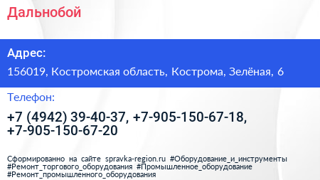 Дальнобой по адресу 156019, Костромская область, Кострома, Зелёная, 6 в дальнейшем Организация, размещена в следующих категориях: