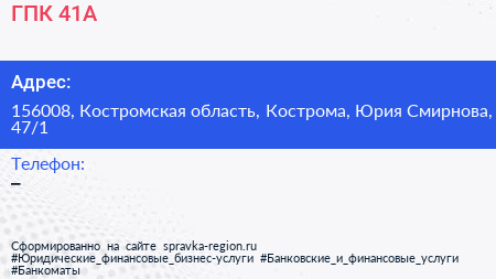 ГПК 41А по адресу 156008, Костромская область, Кострома, Юрия Смирнова, 47/1 в дальнейшем Организация, размещена в следующих категориях: