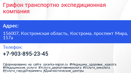 Грифон, транспортно-экспедиционная компания по адресу 156007, Костромская область, Кострома, проспект Мира, 157а в дальнейшем Организация, размещена в следующих категориях: