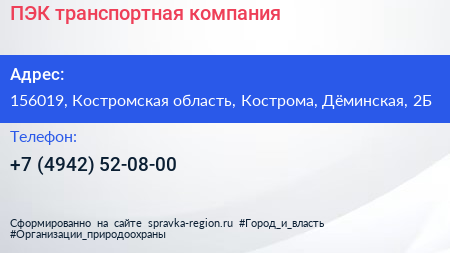 ПЭК, транспортная компания по адресу 156019, Костромская область, Кострома, Дёминская, 2Б в дальнейшем Организация, размещена в следующих категориях: