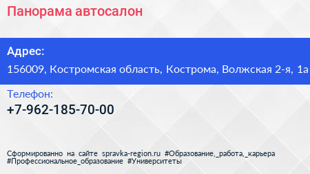Панорама, автосалон по адресу 156009, Костромская область, Кострома, Волжская 2-я, 1а в дальнейшем Организация, размещена в следующих категориях: