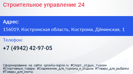 Строительное управление-24 по адресу 156019, Костромская область, Кострома, Дёминская, 1 в дальнейшем Организация, размещена в следующих категориях:
