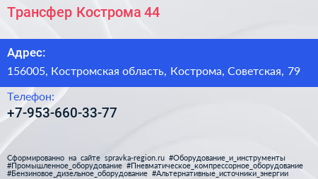 Трансфер Кострома 44 по адресу 156005, Костромская область, Кострома, Советская, 79 в дальнейшем Организация, размещена в следующих категориях: