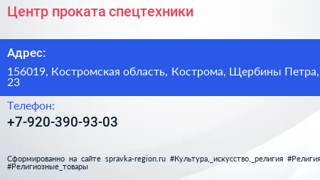 Центр проката спецтехники по адресу 156019, Костромская область, Кострома, Щербины Петра, 23 в дальнейшем Организация, размещена в следующих категориях: