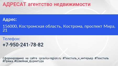 АДРЕСАТ, агентство недвижимости по адресу 156000, Костромская область, Кострома, проспект Мира, 21 в дальнейшем Организация, размещена в следующих категориях: