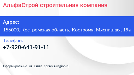 АльфаСтрой, строительная компания по адресу 156000, Костромская область, Кострома, Мясницкая, 19а в дальнейшем Организация, размещена в следующих категориях: