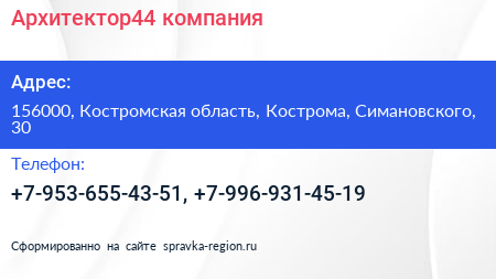 Архитектор44, компания по адресу 156000, Костромская область, Кострома, Симановского, 30 в дальнейшем Организация, размещена в следующих категориях: