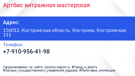 Артбис, витражная мастерская по адресу 156012, Костромская область, Кострома, Костромская, 111 в дальнейшем Организация, размещена в следующих категориях: