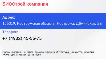 БИОСтрой, компания по адресу 156019, Костромская область, Кострома, Дёминская, 2Б в дальнейшем Организация, размещена в следующих категориях: