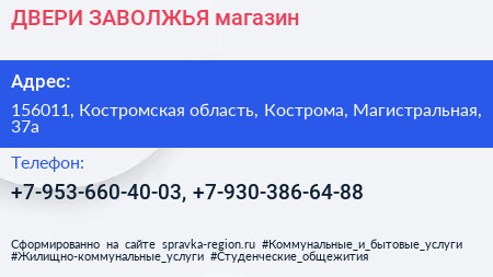 ДВЕРИ ЗАВОЛЖЬЯ, магазин по адресу 156011, Костромская область, Кострома, Магистральная, 37а в дальнейшем Организация, размещена в следующих категориях: