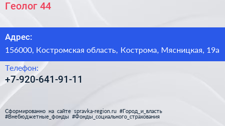 Геолог 44 по адресу 156000, Костромская область, Кострома, Мясницкая, 19а в дальнейшем Организация, размещена в следующих категориях: