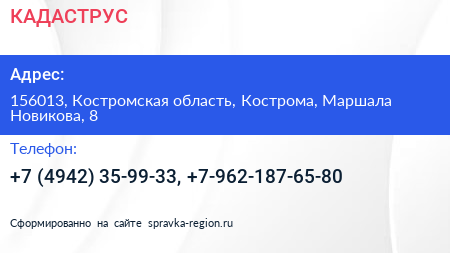 КАДАСТРУС по адресу 156013, Костромская область, Кострома, Маршала Новикова, 8 в дальнейшем Организация, размещена в следующих категориях: