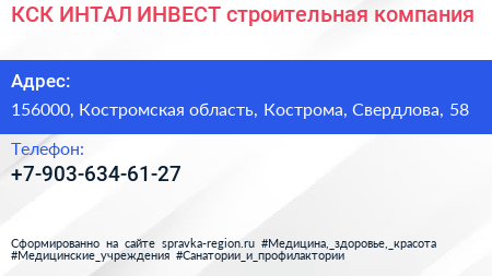 КСК ИНТАЛ-ИНВЕСТ, строительная компания по адресу 156000, Костромская область, Кострома, Свердлова, 58 в дальнейшем Организация, размещена в следующих категориях: