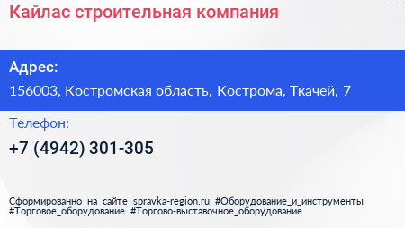 Кайлас, строительная компания по адресу 156003, Костромская область, Кострома, Ткачей, 7 в дальнейшем Организация, размещена в следующих категориях: