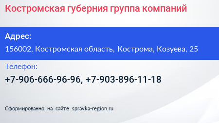 Костромская губерния, группа компаний по адресу 156002, Костромская область, Кострома, Козуева, 25 в дальнейшем Организация, размещена в следующих категориях: