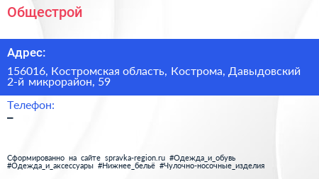 Общестрой по адресу 156016, Костромская область, Кострома, Давыдовский 2-й микрорайон, 59 в дальнейшем Организация, размещена в следующих категориях: