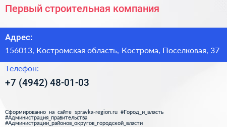 Первый, строительная компания по адресу 156013, Костромская область, Кострома, Поселковая, 37 в дальнейшем Организация, размещена в следующих категориях: