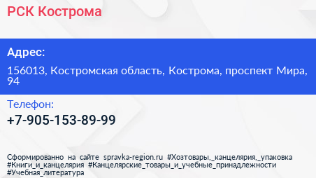 РСК-Кострома по адресу 156013, Костромская область, Кострома, проспект Мира, 94 в дальнейшем Организация, размещена в следующих категориях: