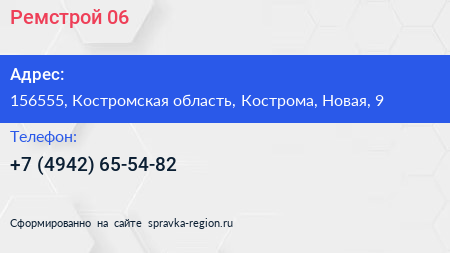 Ремстрой-06 по адресу 156555, Костромская область, Кострома, Новая, 9 в дальнейшем Организация, размещена в следующих категориях: