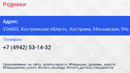 Родники по адресу 156001, Костромская область, Кострома, Московская, 94а в дальнейшем Организация, размещена в следующих категориях: