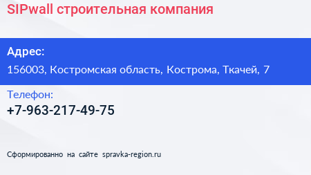 SIPwall, строительная компания по адресу 156003, Костромская область, Кострома, Ткачей, 7 в дальнейшем Организация, размещена в следующих категориях:
