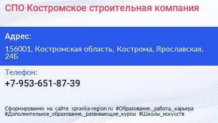 СПО Костромское, строительная компания по адресу 156001, Костромская область, Кострома, Ярославская, 24Б в дальнейшем Организация, размещена в следующих категориях: