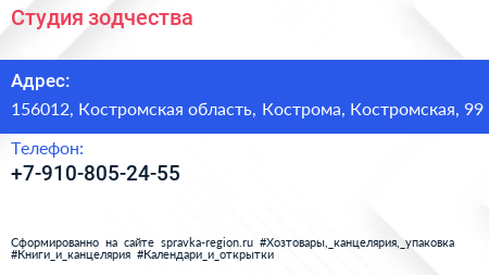 Студия зодчества по адресу 156012, Костромская область, Кострома, Костромская, 99 в дальнейшем Организация, размещена в следующих категориях: