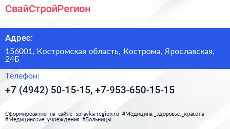 СвайСтройРегион по адресу 156001, Костромская область, Кострома, Ярославская, 24Б в дальнейшем Организация, размещена в следующих категориях:
