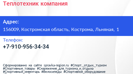 Теплотехник, компания по адресу 156009, Костромская область, Кострома, Льняная, 1 в дальнейшем Организация, размещена в следующих категориях: