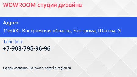 WOWROOM, студия дизайна по адресу 156000, Костромская область, Кострома, Шагова, 3 в дальнейшем Организация, размещена в следующих категориях: