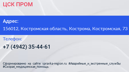 ЦСК-ПРОМ по адресу 156012, Костромская область, Кострома, Костромская, 73 в дальнейшем Организация, размещена в следующих категориях: