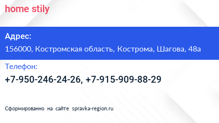 home & stily по адресу 156000, Костромская область, Кострома, Шагова, 48а в дальнейшем Организация, размещена в следующих категориях: