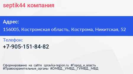 septik44, компания по адресу 156005, Костромская область, Кострома, Никитская, 52 в дальнейшем Организация, размещена в следующих категориях: