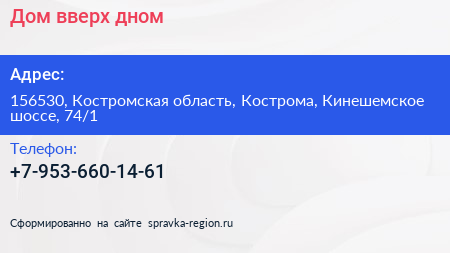 Дом вверх дном по адресу 156530, Костромская область, Кострома, Кинешемское шоссе, 74/1 в дальнейшем Организация, размещена в следующих категориях:
