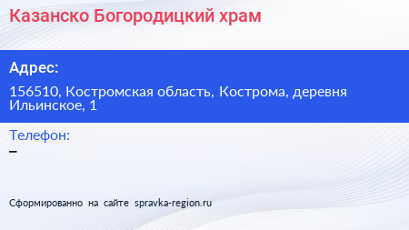 Казанско-Богородицкий храм по адресу 156510, Костромская область, Кострома, деревня Ильинское, 1 в дальнейшем Организация, размещена в следующих категориях: