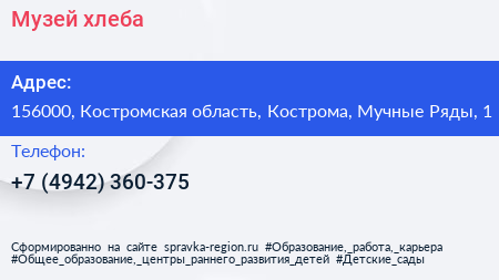 Музей хлеба по адресу 156000, Костромская область, Кострома, Мучные Ряды, 1 в дальнейшем Организация, размещена в следующих категориях: